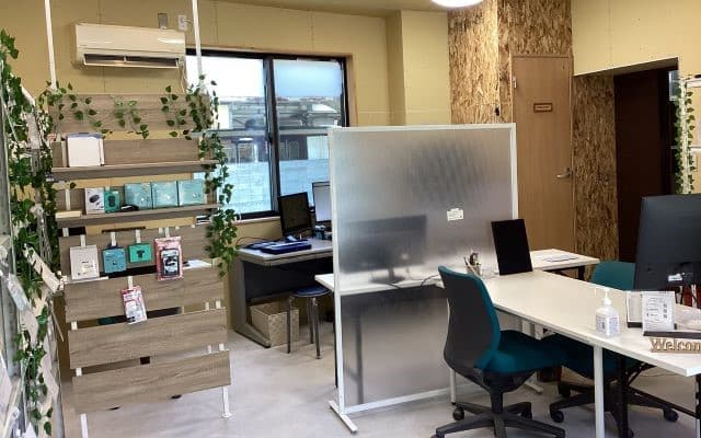 相談スペースと修理工房を兼ねた店舗になります。相談スペースにて修理担当のエンジニアが問題内容をお伺いさせてただき、修理工房にて調査・修理を即時実施致します。修理作業は店舗内で行いますので、即日・短期預かり対応が可能です。